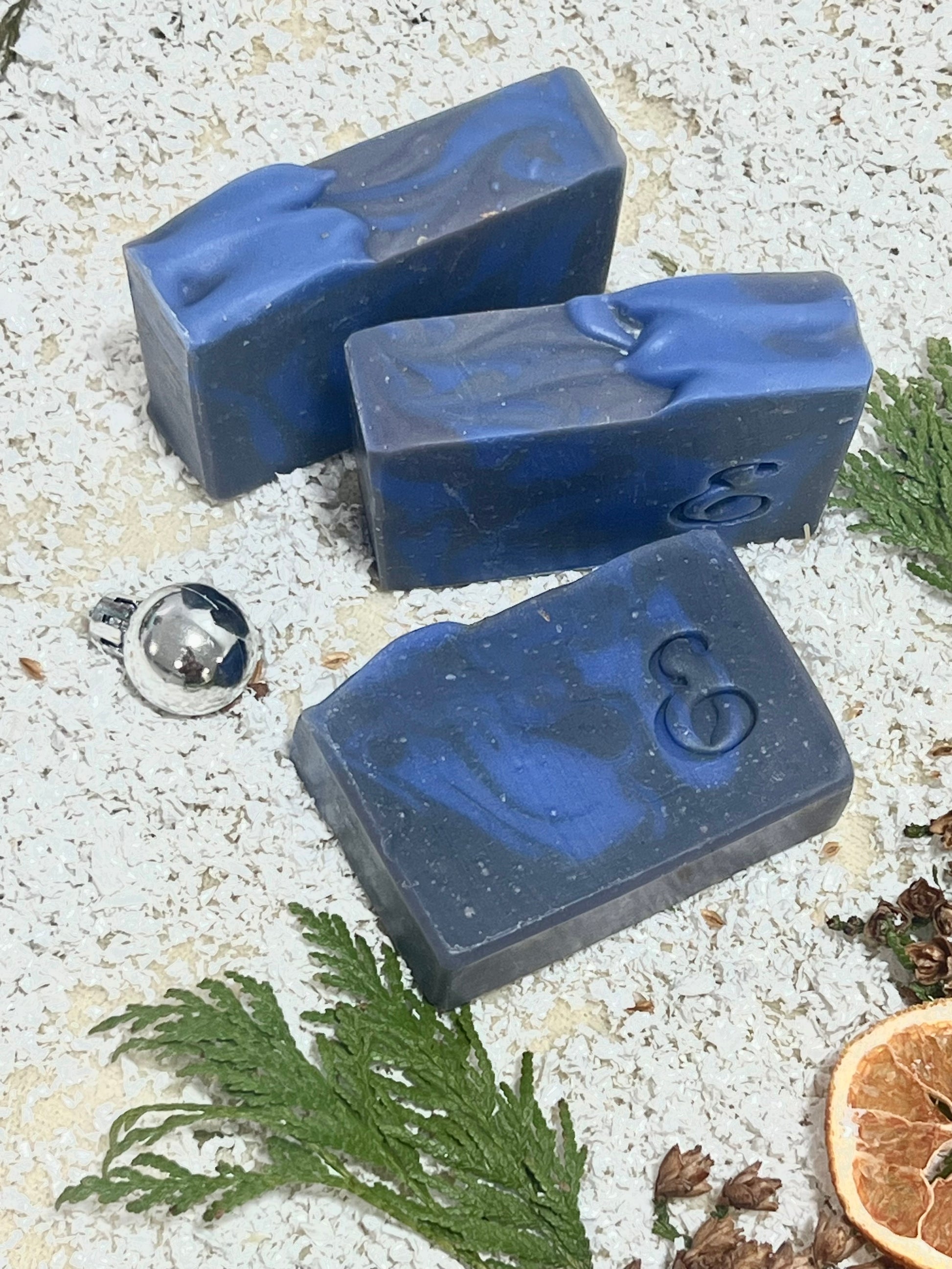 Ingredientes: Aceites saponificados de oliva, aceite de coco, manteca de karité, agua, aceite de aguacate, hidróxido de sodio, aceite ricino, arcilla blanca, fragancia libre de parabenos, mica cosmética, arcilla verde francesa, polvo indigo color.